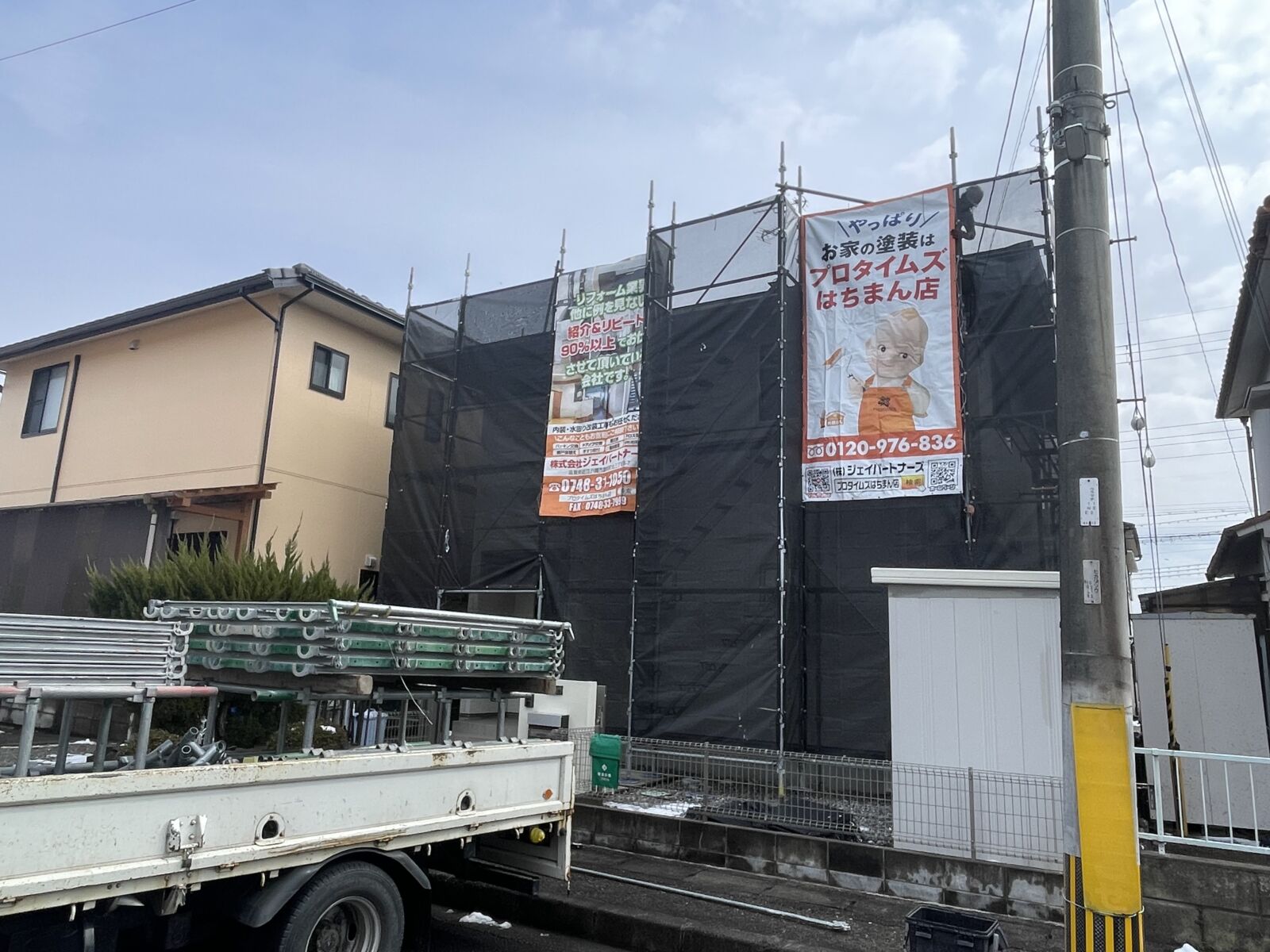 近江八幡市の屋根・外壁塗装着工です!