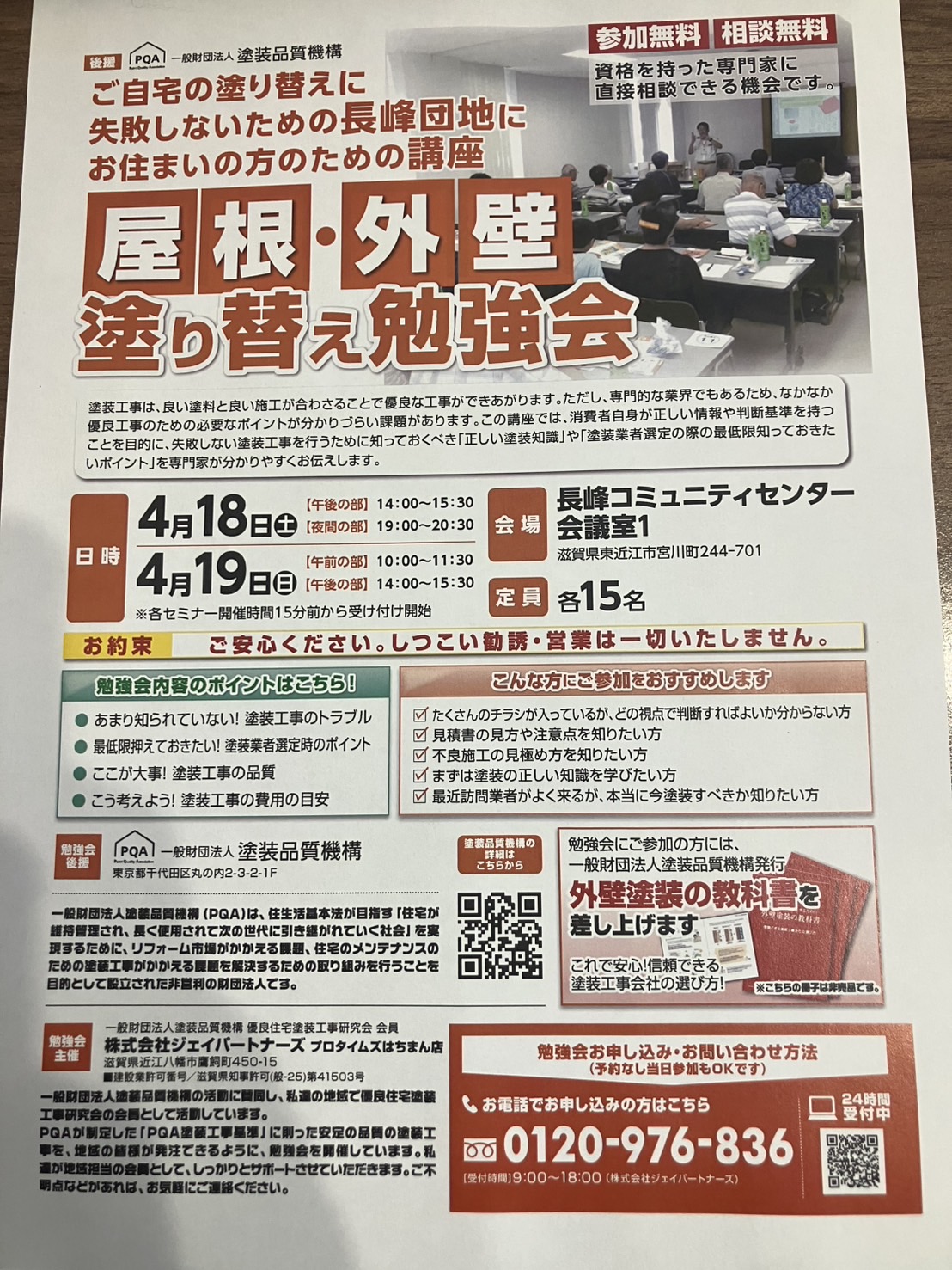 - 屋根・外壁塗り替え勉強会 長峰 夜間の部