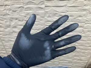 外壁を手でこするとやはり白い粉のようなものが付着しました。