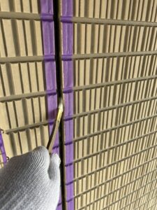 近江八幡市 外壁塗装現場でコーキング打ち替え。